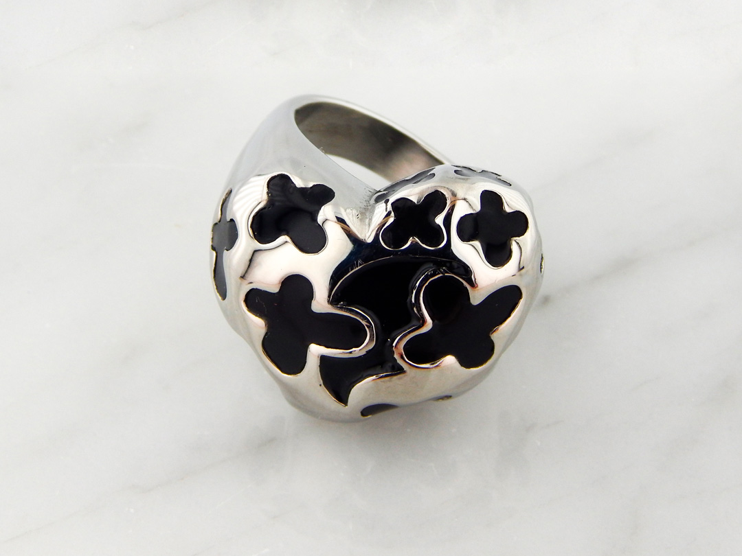 Anillo de Acero con forma de Corazón Esmaltado de 23 x 27 mm aproximadamente. Talle 15, 17, 20 y 23