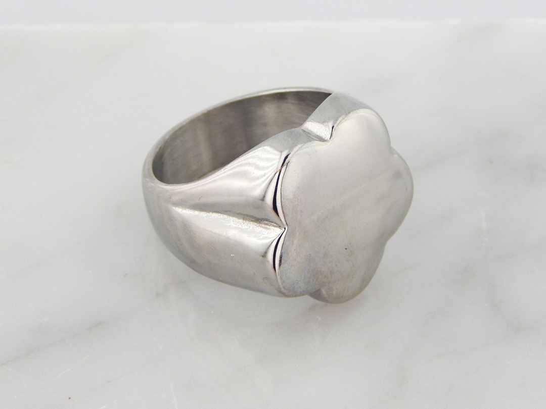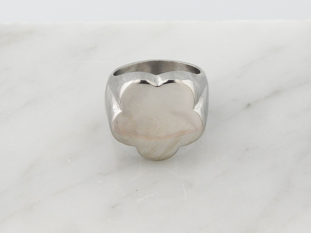 Anillo de Acero Tipo Sello con forma de Flor de 22 mm de diámetro de circunferencia aproximadamente. Talle 15, 17, 20 y 23