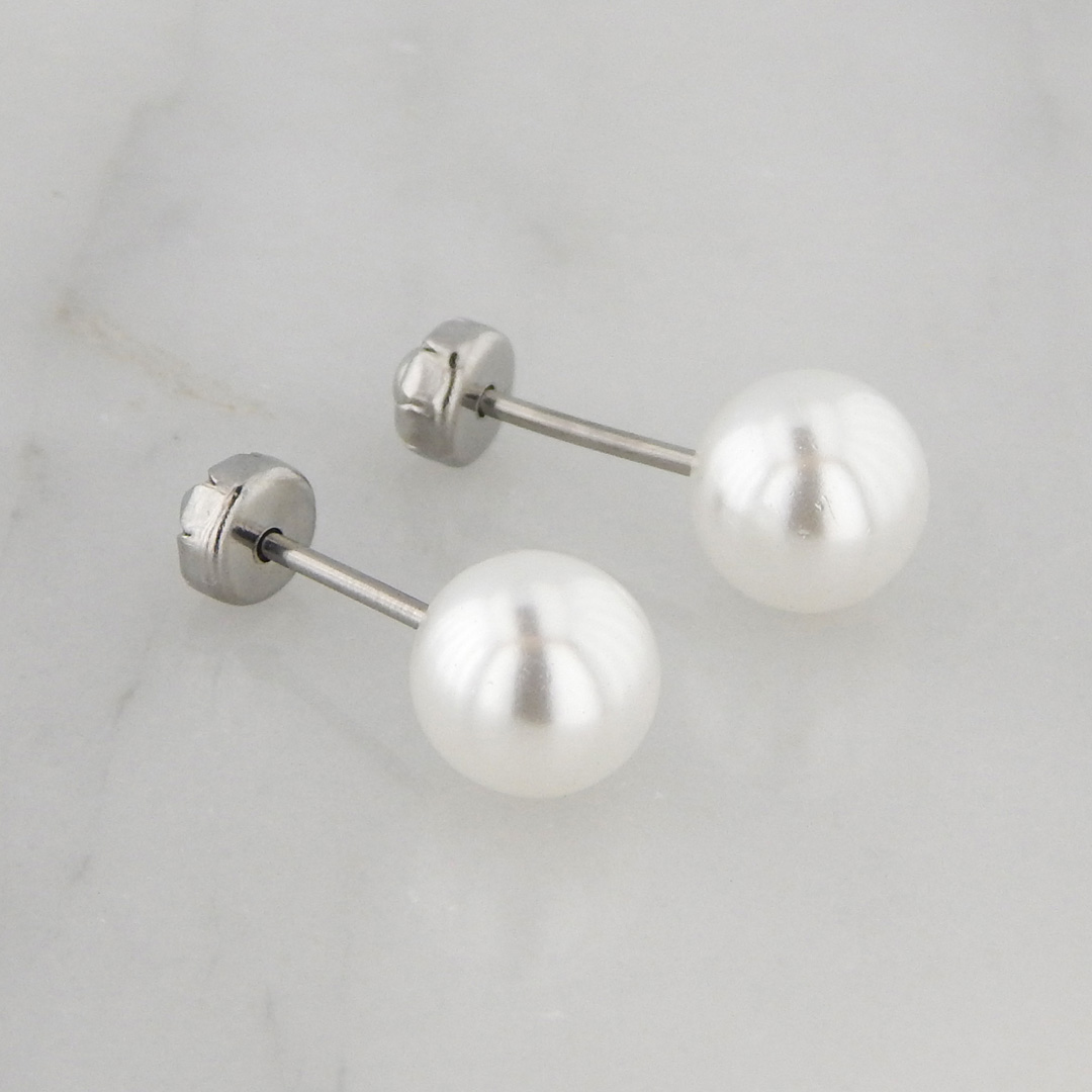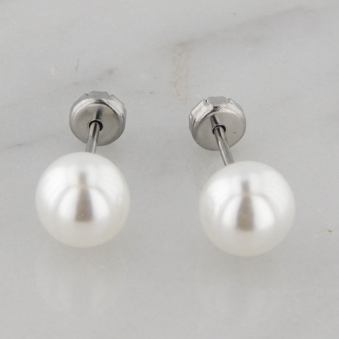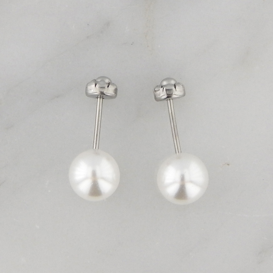 Aros Abridores de Acero con Perla Blanca de 7 mm de Diámetro. Largo Total del Aro 17 mm.