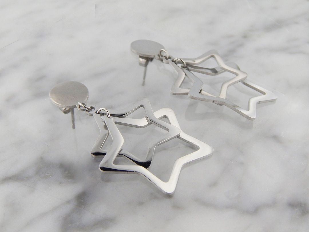 Aros de acero en forma de estrella, colgantes, pasantes, de 4 cm aproximadamente