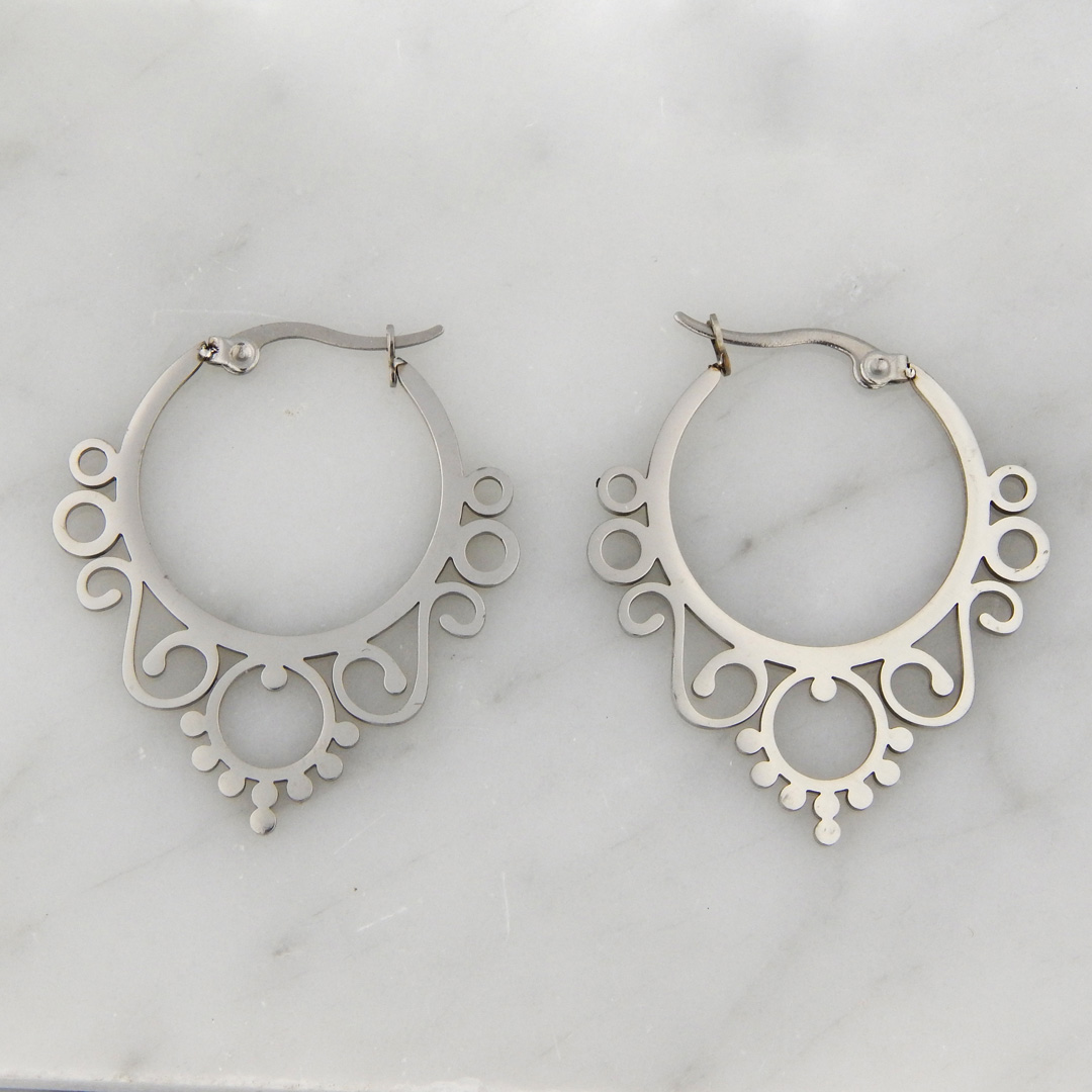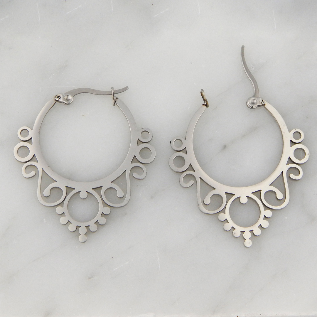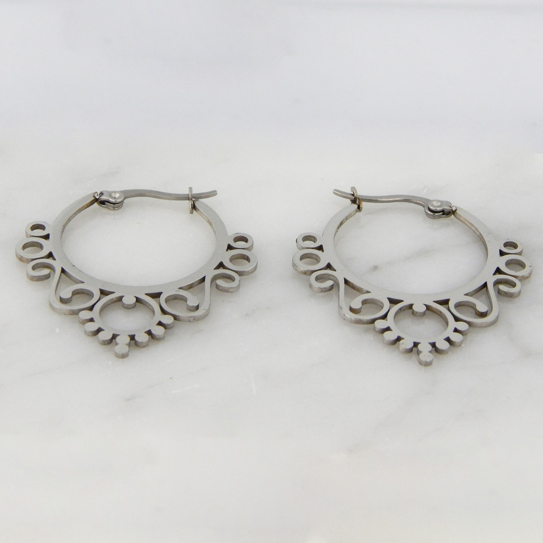 Aros de Acero tipo Argolla Labrada y Calada 3 cm de Diámetro aproximadamente