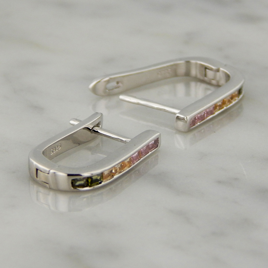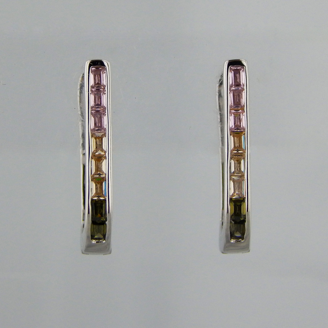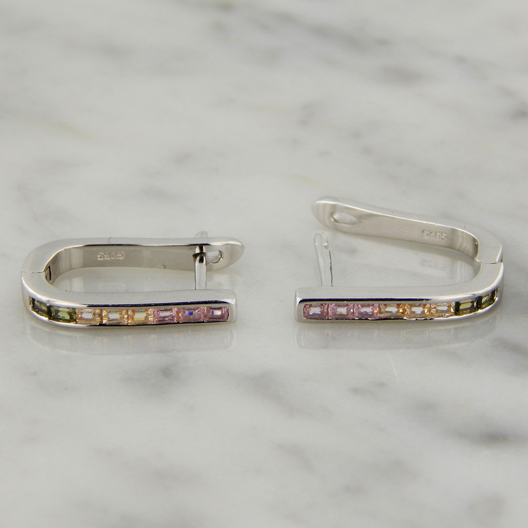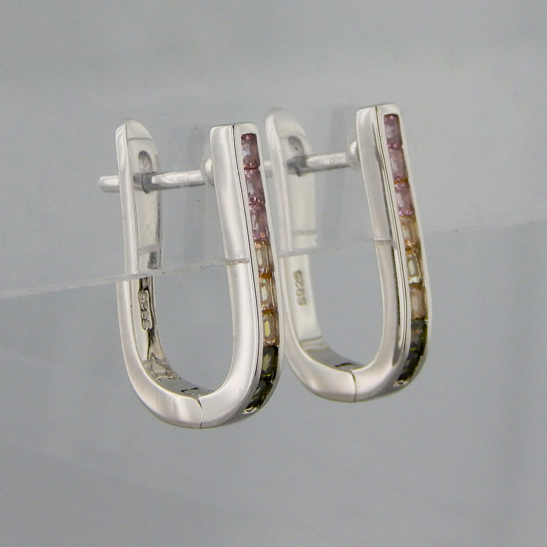 Aros de Plata Rodinada en forma de U de 17 x 11 mm con Cubics en Colores Ambar, Amarillos y Rosados.