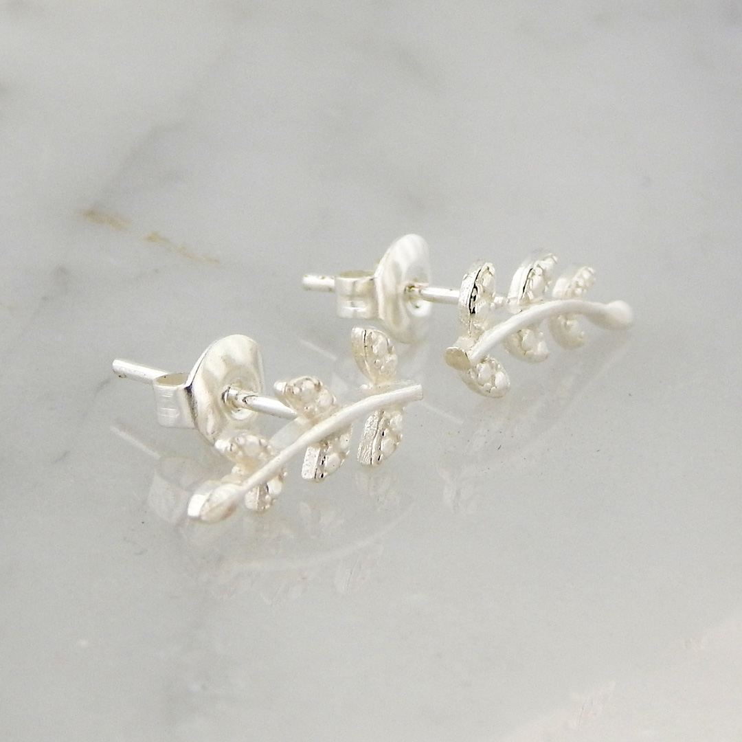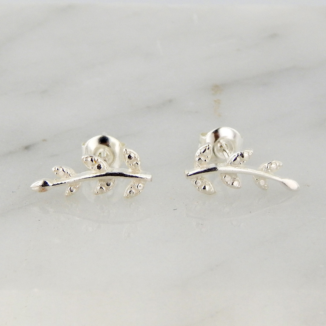 Aros de Plata con forma de Laurel de 14 x 6 mm aproximadamente.