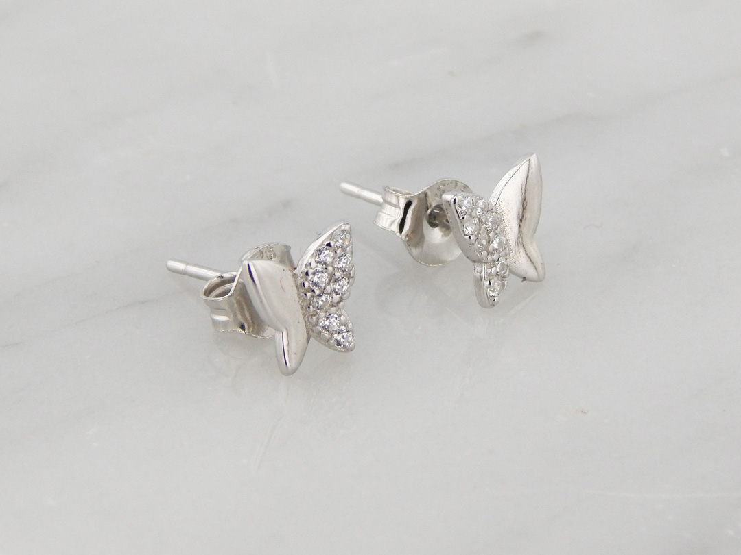 Aros Mariposas de Plata con Cubic. De 6mm x 6mm aproximadamente.