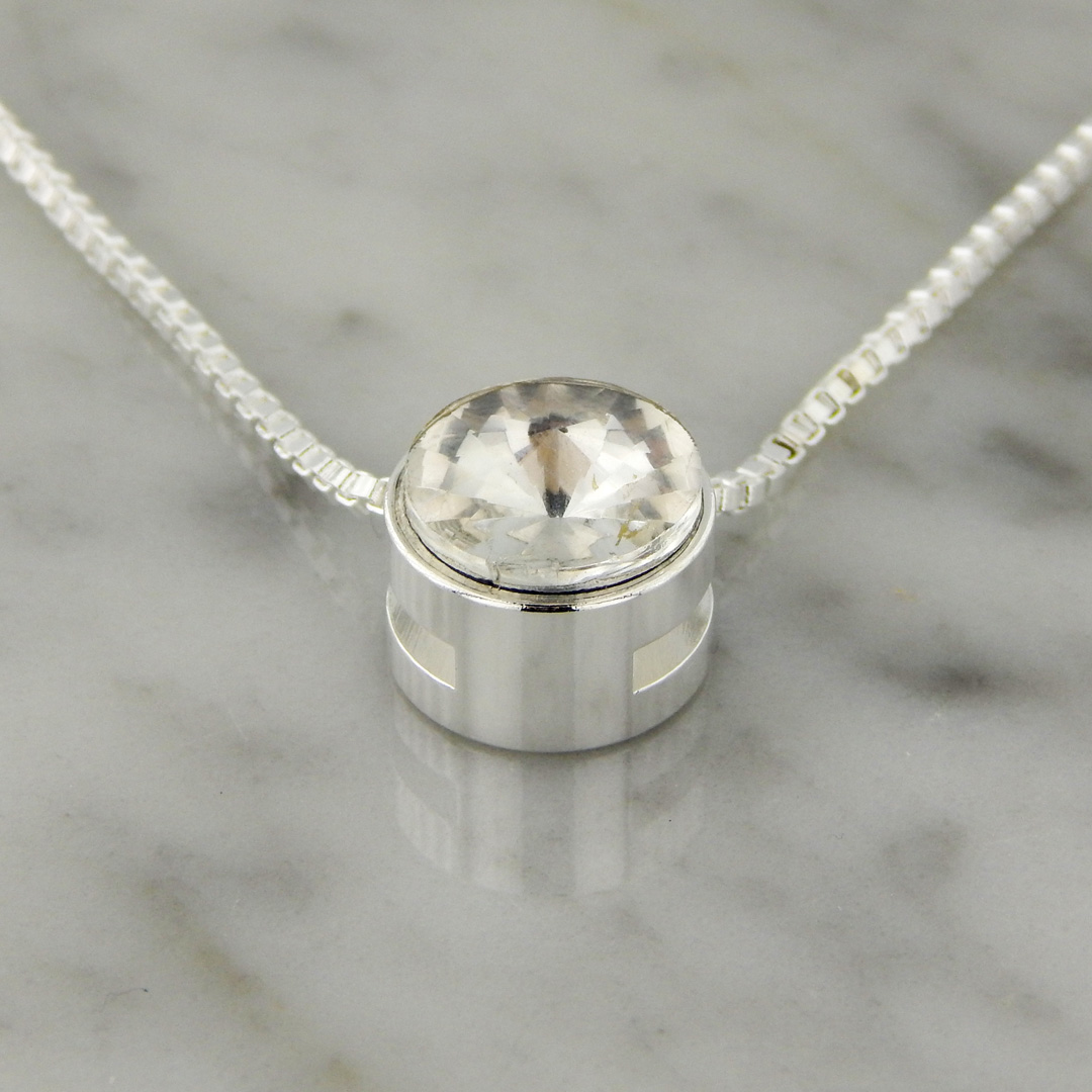 Collar de Acero Blanco con Dije tipo Susanito 12 mm de Diámetro en Caneda Veneciana. Largo del Collar 40 cm más 5 cm de extensión.