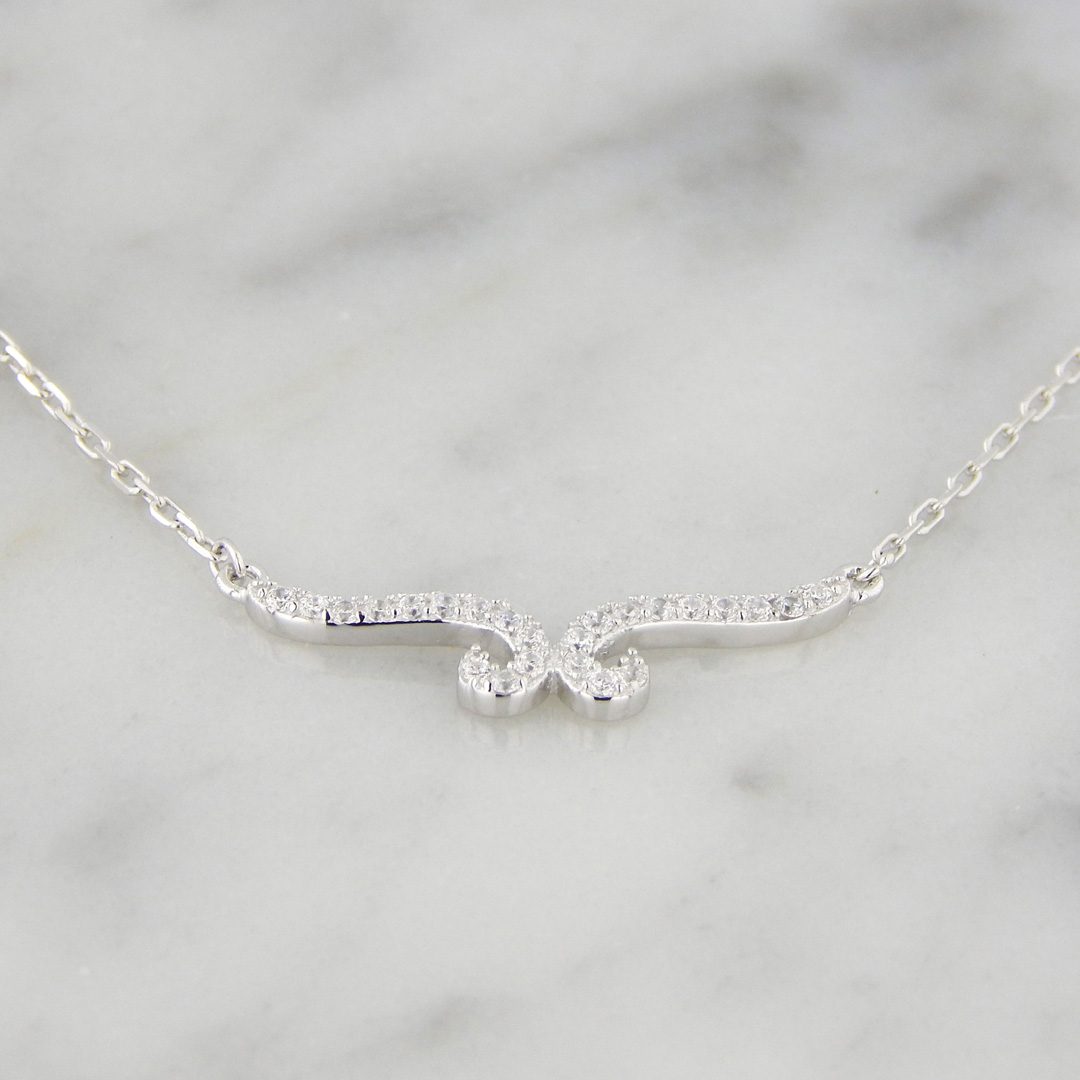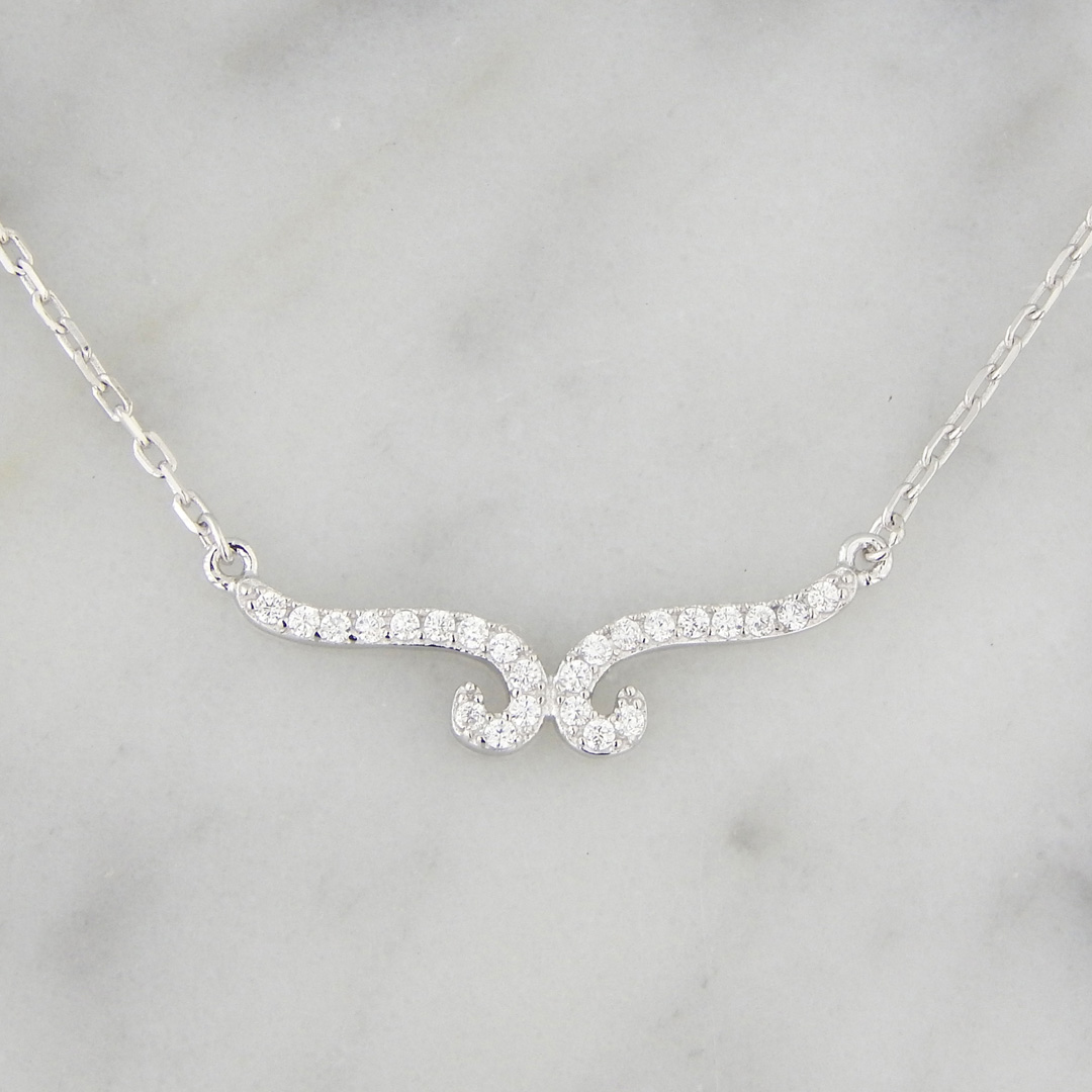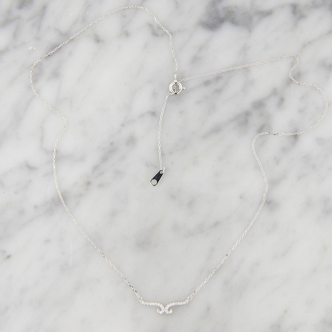 Collar de Plata Rodinada con Dije con Cubics micropavé de 18 mm de largo y Cadena Forcet. Largo del collar 39 cm mas 4 cm de extensón.