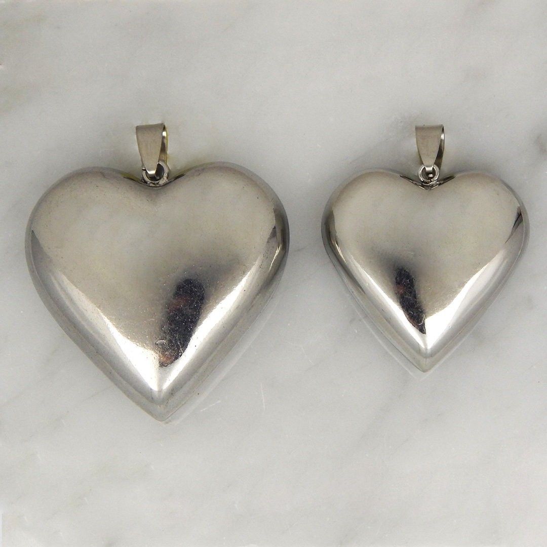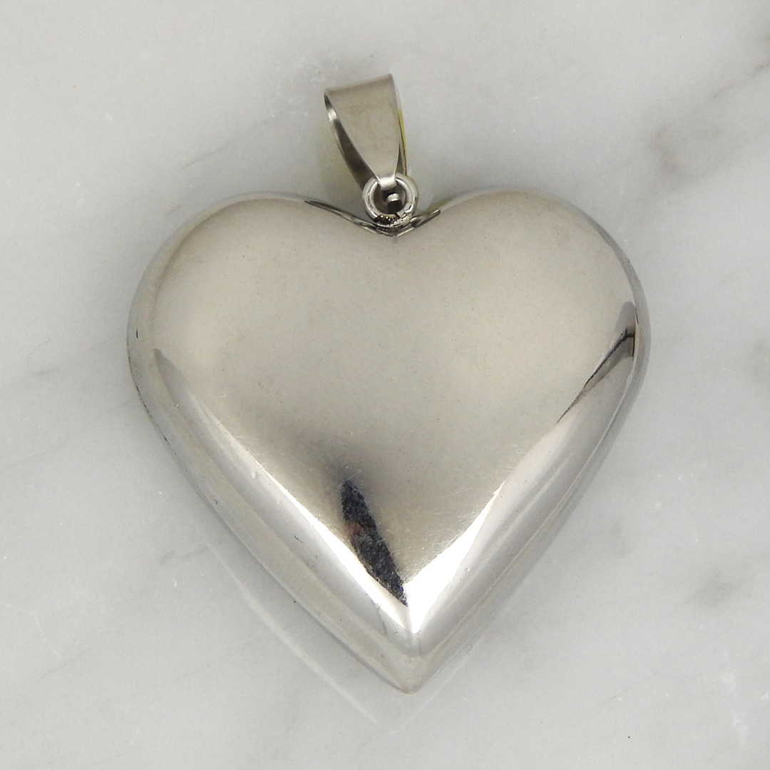 Dije de Acero Inflado en forma de Corazòn Liso en dos medidas, de 33 x 33 mm y de 40 x 40 mm aproximadamente.