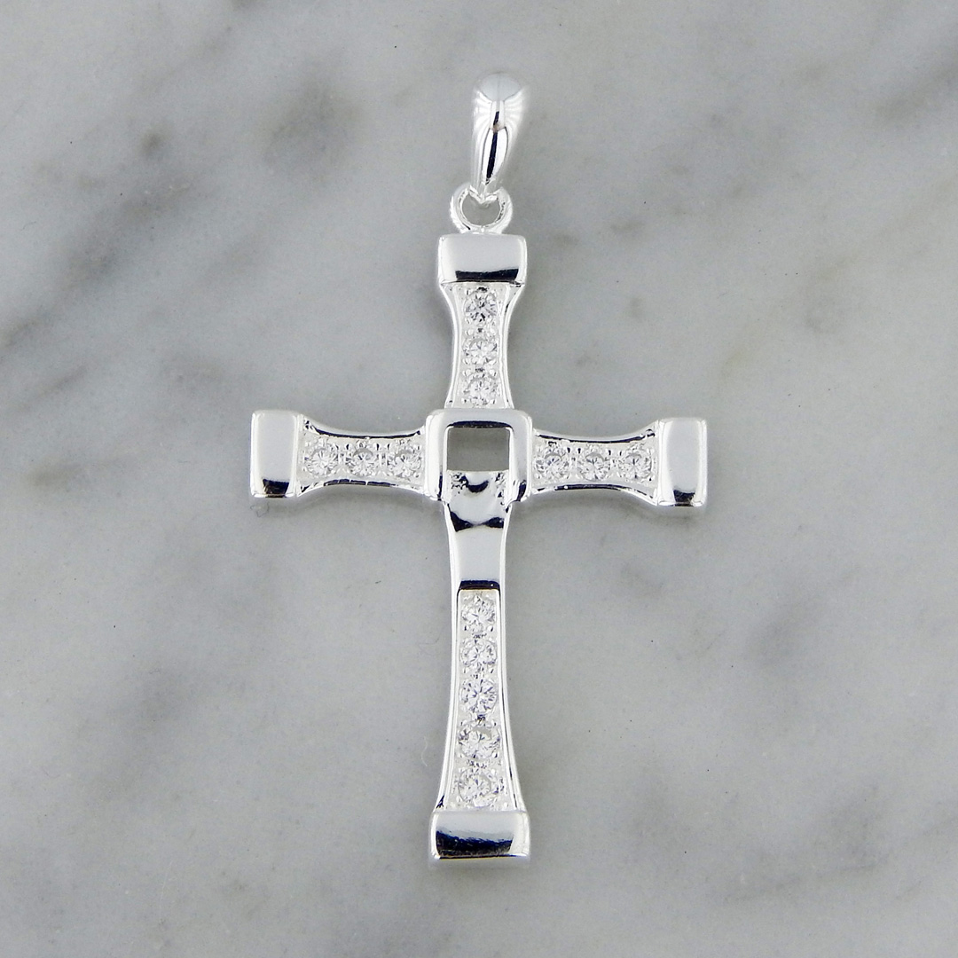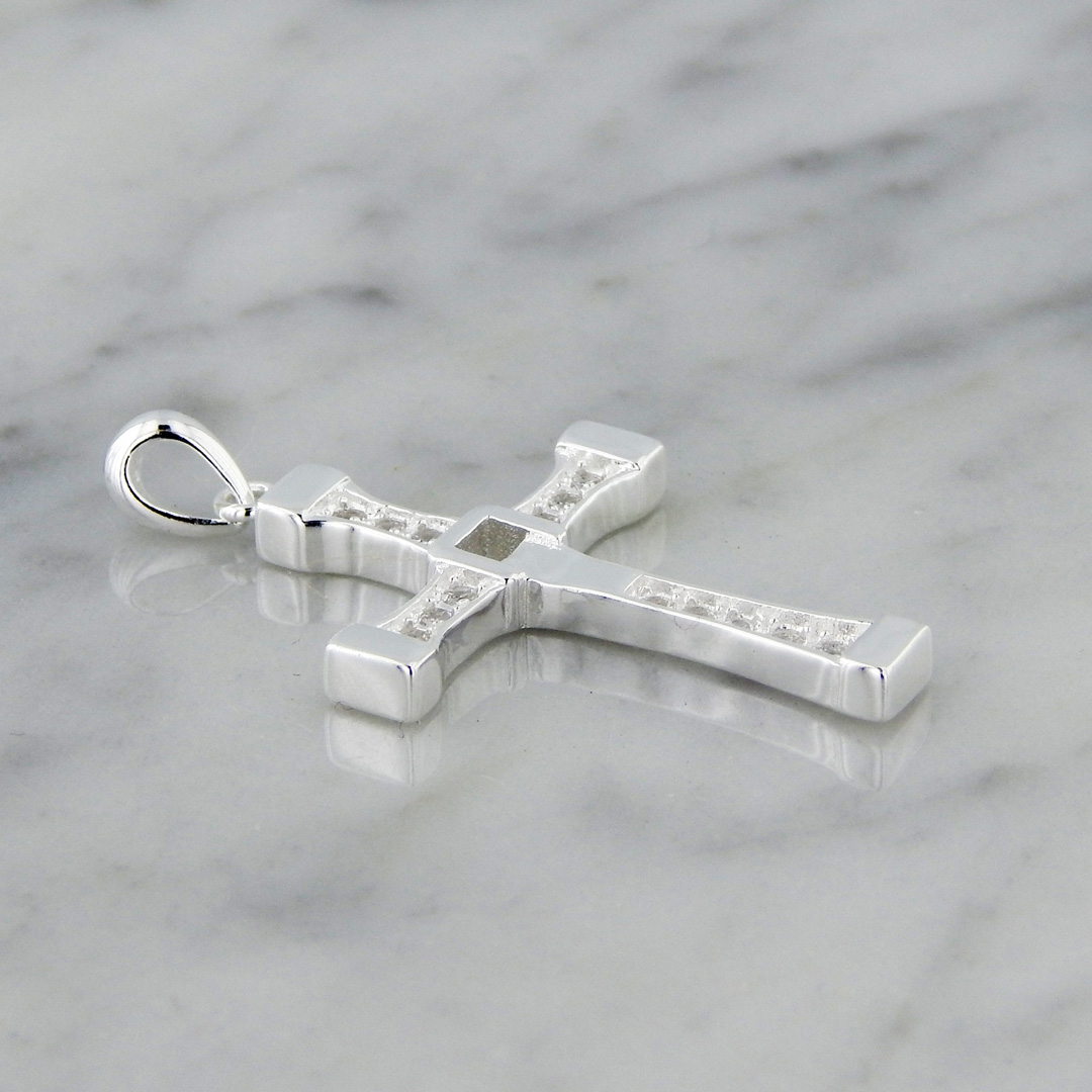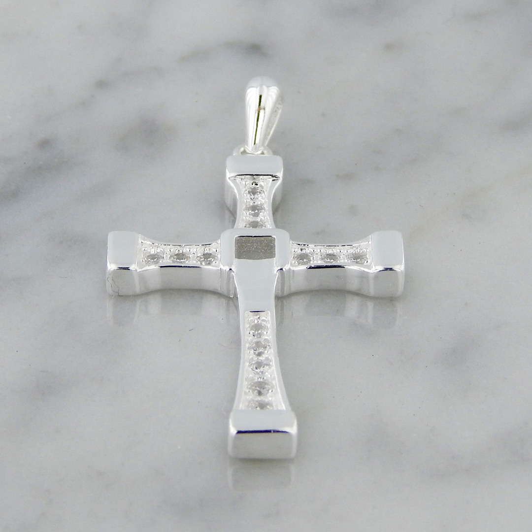 Dije de Plata en forma de Cruz de Toretto de 30 x 20 mm con Cubics.