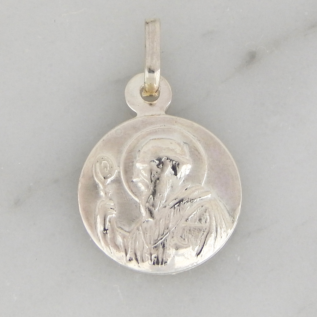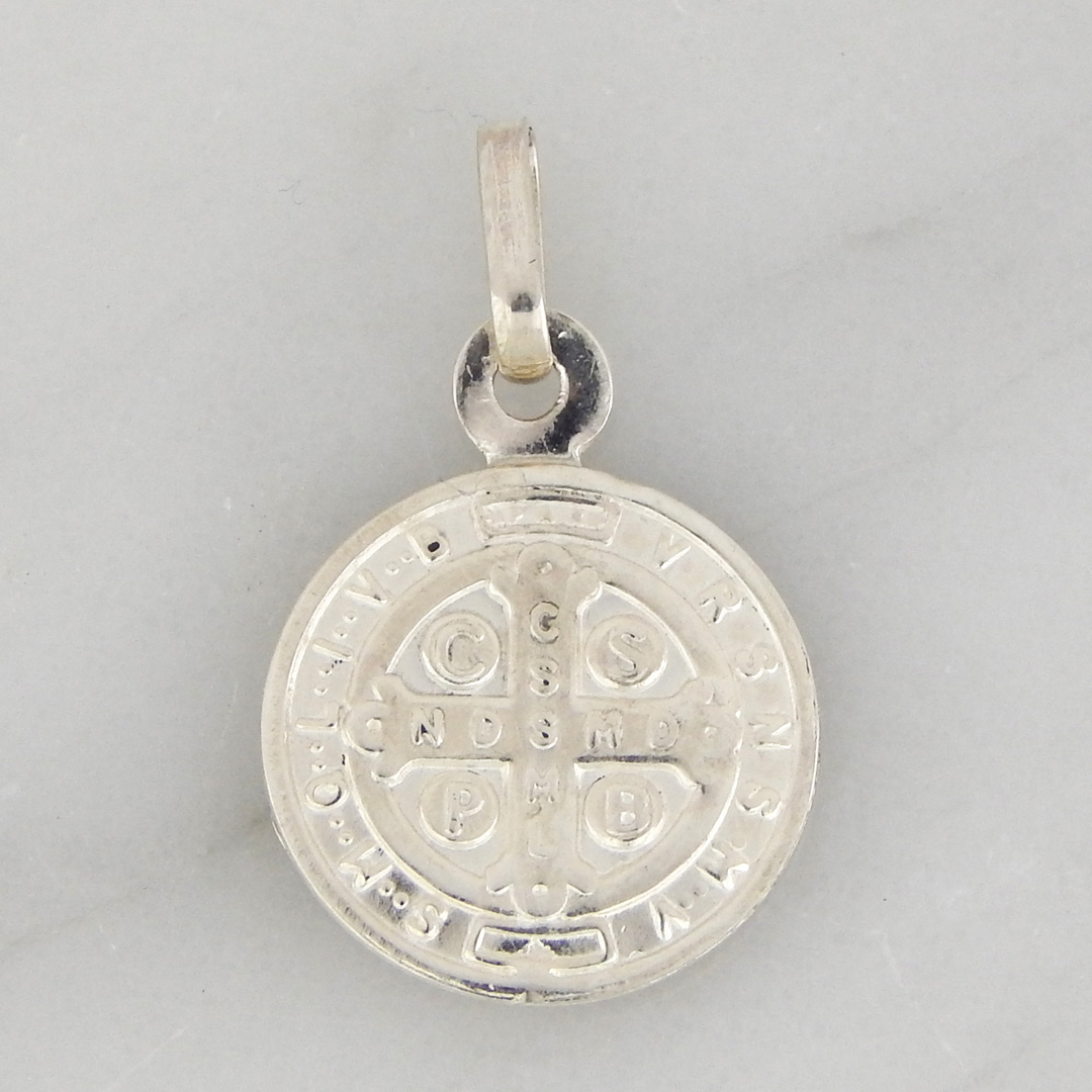 Dije de Plata tipo Medalla de San Benito de 12 mm de diámetro.