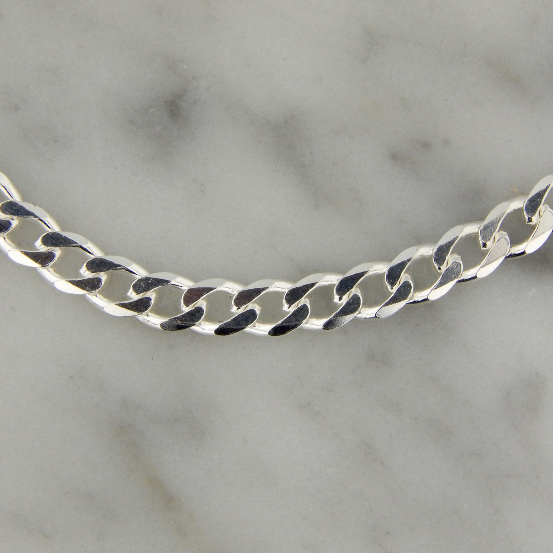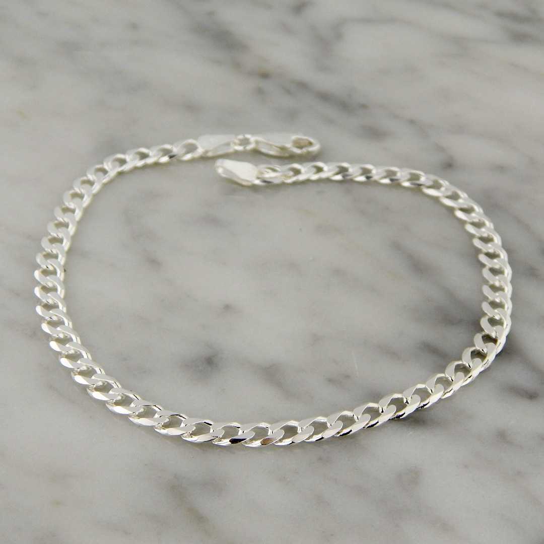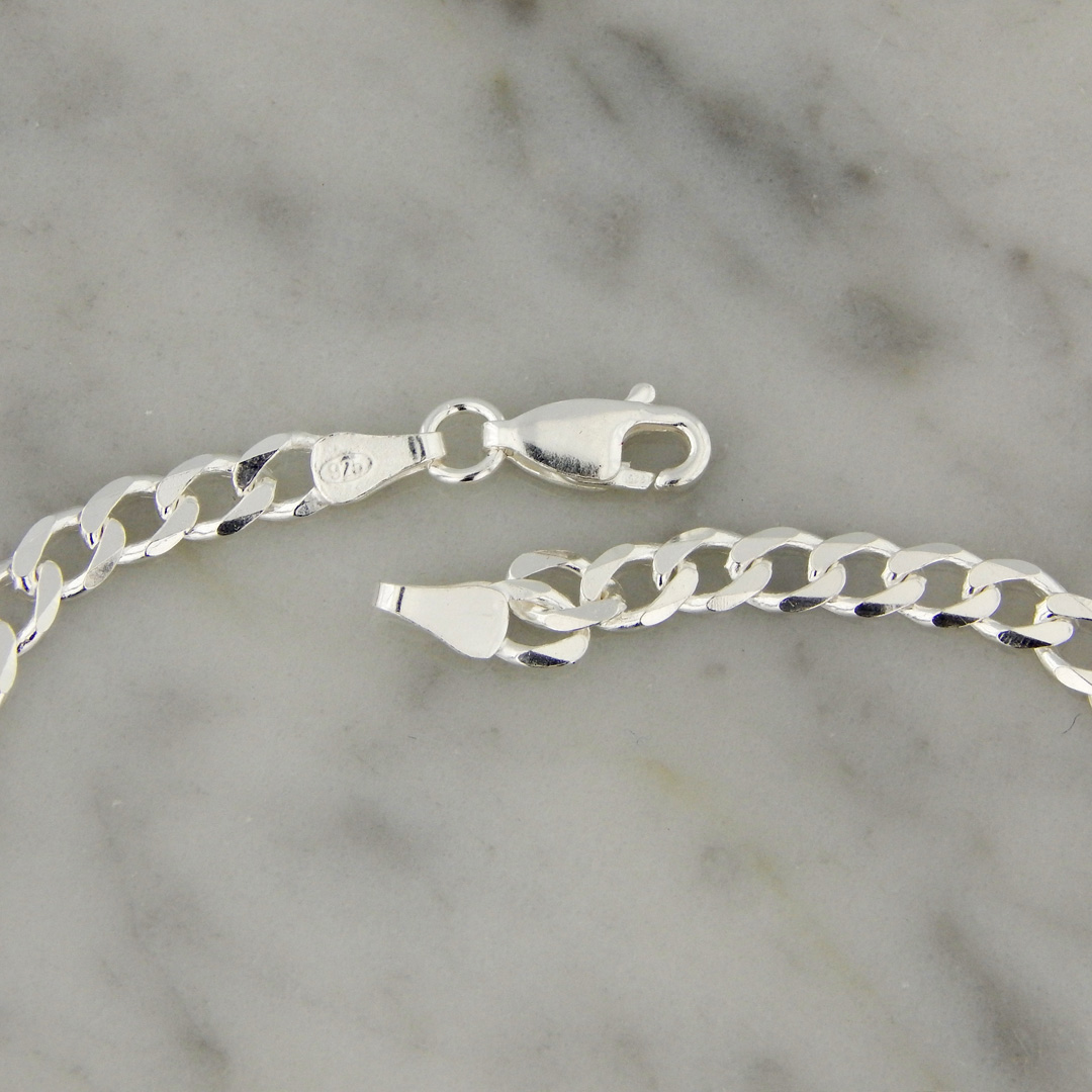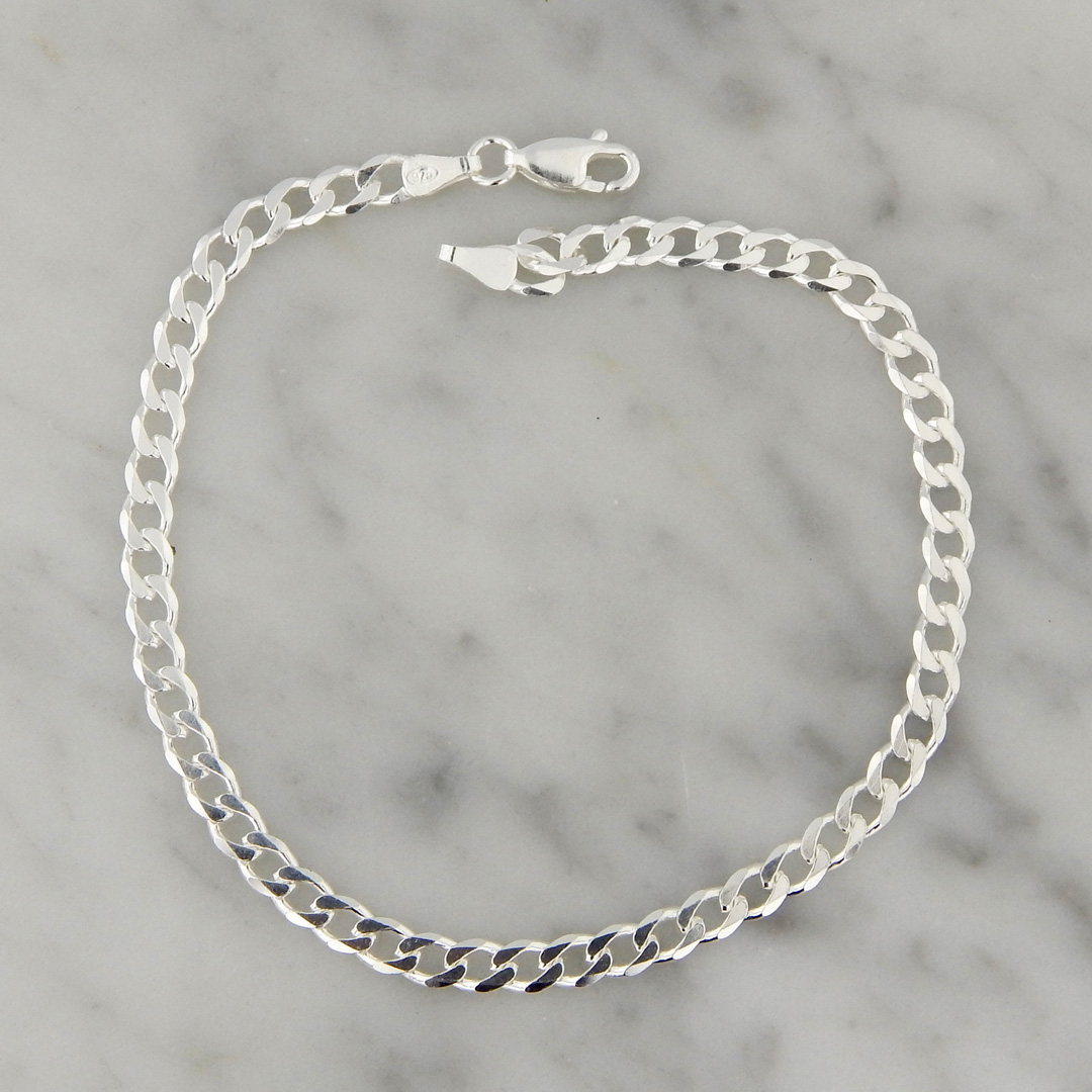 Pulsera de Plata con Cadena tipo Groumet Abierta de 4 mm de Espesor. Largo de la pulsera, 20.5 cm.