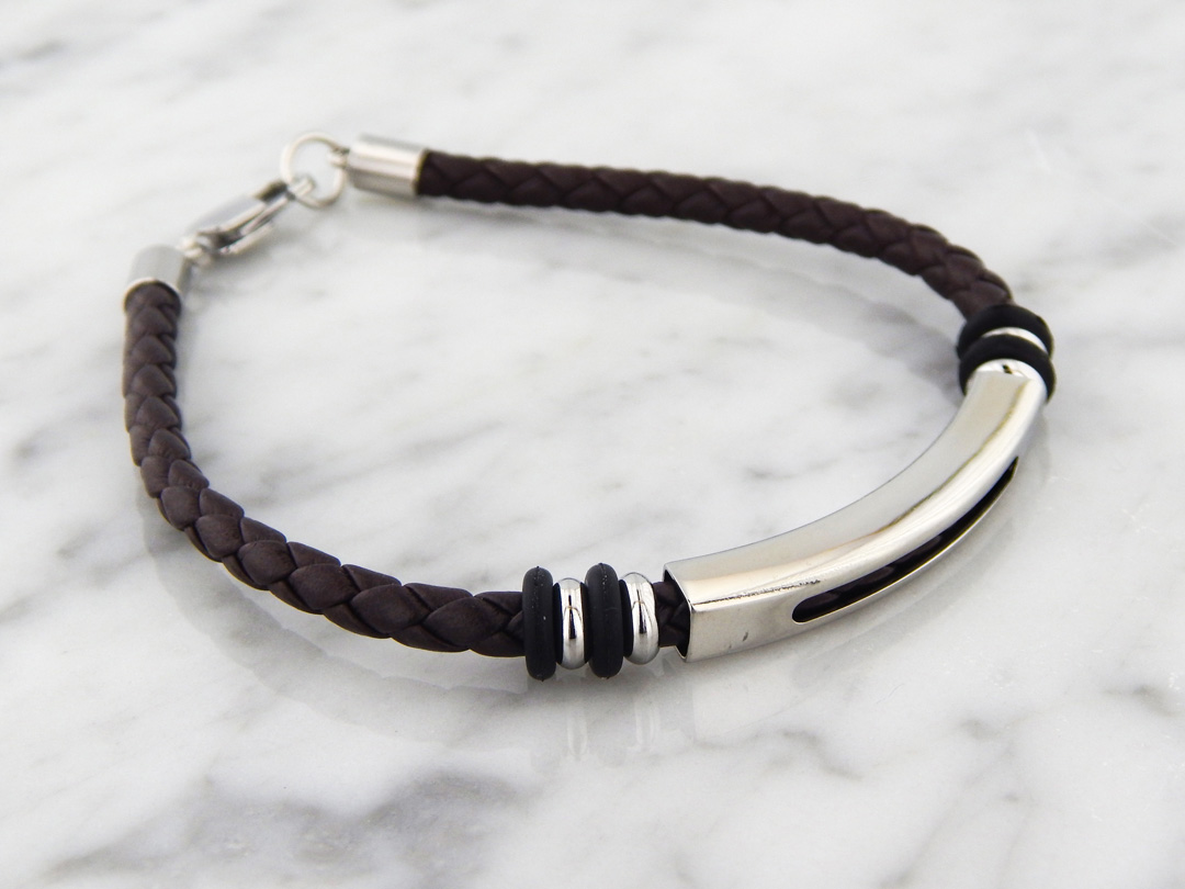 Pulsera simil Cuero Trenzado marrón con frente Rigido. Diseño Diesel. Largo de la Pulsera 22 cm aproximadamente
